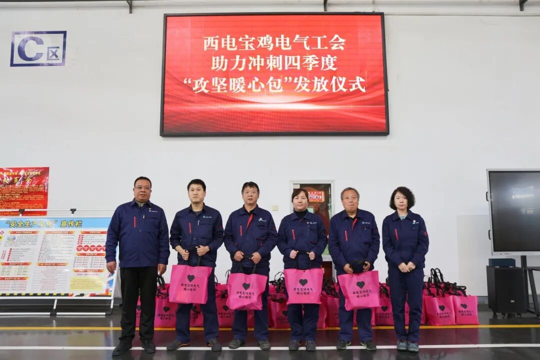 小小的暖心包,承载着公司对广大职工的牵挂;冬日的温情关怀,凝聚起全员攻坚的磅礴力量。此次发放仪式不仅为一线员工送去了物质上的支持,更给予了精神上的鼓舞。一线员工代表表示,全体员工将把这份关怀转化为攻坚干劲,坚守岗位、精益求精,严把质量关、加快任务推进,带着这份关爱保重身体、再接再厉,以昂扬斗志冲刺年度各项生产经营指标,为西电宝鸡电气高质量发展贡献力量。
